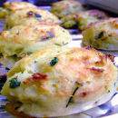Poner a cocer las patatas peladas en agua con el laurel, sal y un chorrito de aceite de oliva. Una vez cocidas, escurrimos el agua, retiramos la hoja de laurel y trituramos hasta formar un puré. Reservamos. En una sartén preparamos un sofrito con la cebolla y el diente de ajo. Agregamos este sofrito al puré de patatas junto con la bebida vegetal, la harina, la cucharada de aceite y trituramos todo con la minipimer. Agregamos el perejil picado finamente y revolvemos. Ponemos a calentar el horno a 200º por 5 minutos y aceitamos una lata donde pondremos porciones de puré en forma de bolitas. Pintamos con un poco de aceite cada porción de puré antes de introducirlas en el horno. Cocinamos por 20 minutos a 150 º.