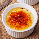 Antes de servirlos, cubre la superficie de cada molde con un poco de azúcar integral de coco o azúcar integral de panela y con un soplete de cocina lo fundes hasta que se tueste ligeramente, sin llegar a quemarlo.