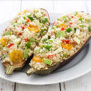 Berenjena rellena de quinoa y verduras