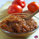 Ingredientes: 1 kilogramo de tomates maduros, 3 manzanas, 1/4 de vinagre blanco, 1 cebolla grande, 2 dientes de ajos, 1/a taza de azúcar morena, 1 pizca de canela, 1 pizca de nuez moscada y 3 palitos de clavo de olor.