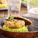 2. Hamburguesa de lentejas, cebolla caramelizada y nueces