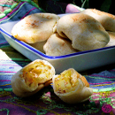 Los kachori son unos panecillos tradicionales del norte de Pakistan y la India, donde se comen como aperitivos. Por lo general están rellenos de legumbres como lentejas y los garbanzos. Esta vez quisimos hacer una versión mucho mas liviana y menos picante que la tradicional, por lo cual utilizamos patata en vez de legumbres. Si te gusta el toque picante puedes agregarle a los ingredientes un poco de pimienta negra recién molida.