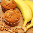 Magdalenas o muffins de plátano y nueces (sin huevo ni lácteos)