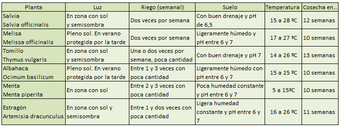 En este cuadro puedes ver algunas de las recomendaciones para el cultivo de estas plantas