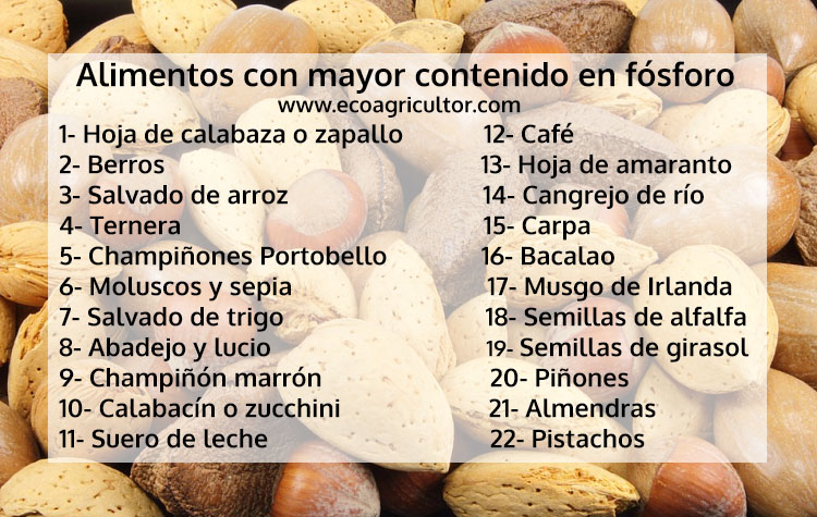 Además aquí puedes ver una lista con la cantidad de fósforo por cada 100 mg en diferentes alimentos.