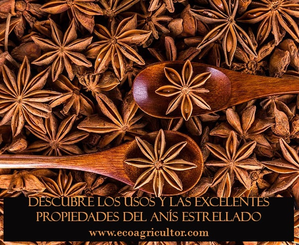 Los frutos de este árbol de hoja perenne tienen forma estrellada con 8 carpelos que dentro contienen las semillas. Estos frutos se recolectan antes de la madurez completa, cuando el contenido de aceite esencial está en su máximo esplendor.