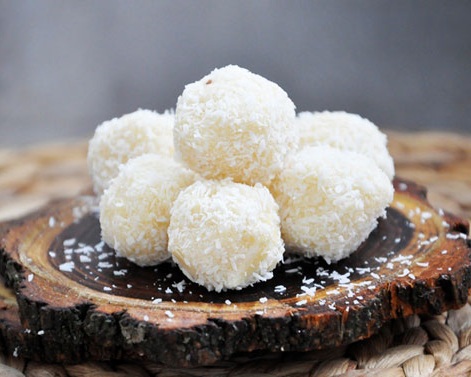 Mezcla bien todos los ingredientes en un procesador de cocina hasta que estén bien integrados y tengas una masa homogénea. Ve cogiendo pequeños trozos los vas dando la forma deseada y los pasas por coco rallado. Déjalas en la nevera durante, al menos, media hora antes de comerlas.