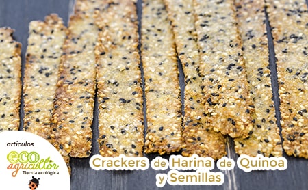 A veces nos apetece picar algo salado y estos crackers o palitos de harina de quinoa y semillas son una buena opción. Se tarda muy poquito en hacerlos y te duran hasta una semana. Son ideales también para llevarnos como snack cuando estamos fuera.