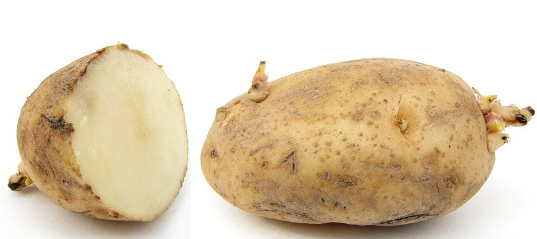 1.- Las propias patatas, aunque no son semillas, se pueden utilizar como si lo fueran y cultivarlas directamente. Corta las patatas ecológicas u orgánicas (esto mejorará la aparición de brotes) y colócalas en una bandeja en un lugar fresco (bien aireado) donde reciban la luz del sol. Cuando veas que los brotes ya tienen 3 centímetros de largo, los comenzaremos a plantar.