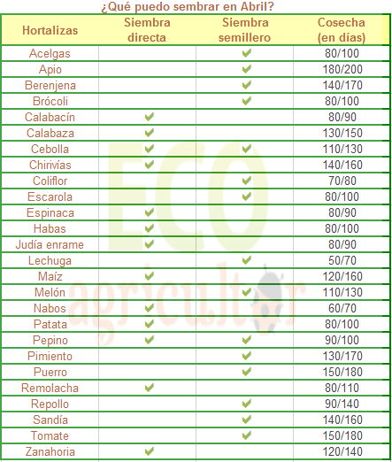 Aquí puedes ver un cuadro con los cultivos de Abril.