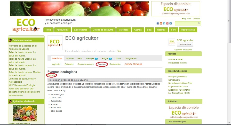 Puede que tu evento ya esté incluido en el directorio con una ficha gestionada por ECO agricultor. Al registrarte como usuario, podrás crear tu propia ficha y gestionarla tú mismo.