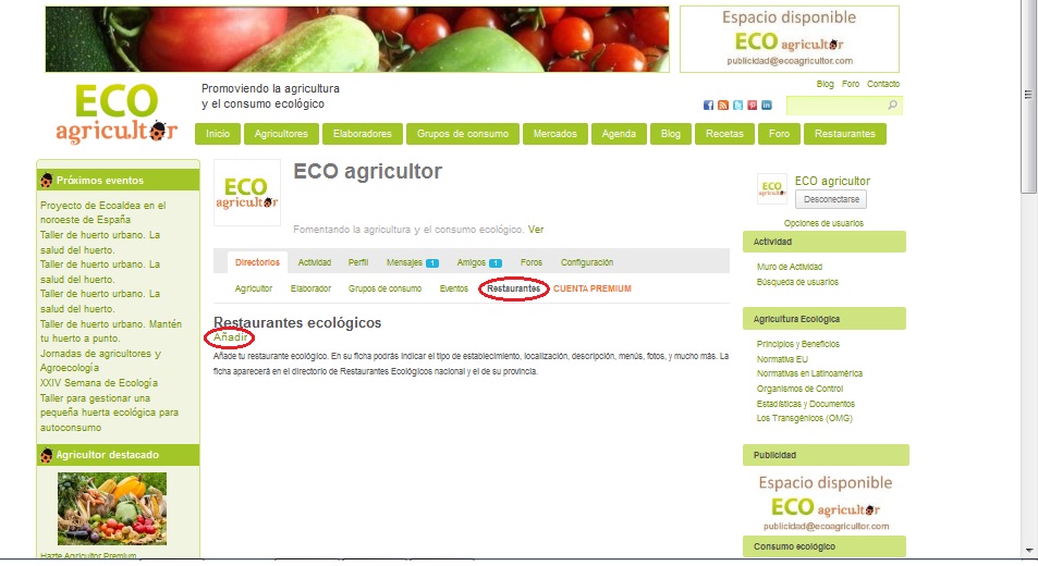 Al crear tu ficha de Restaurante Ecológico y ser ésta incluida en el directorio de Restaurantes Ecológicos, tendrás las siguientes opciones: