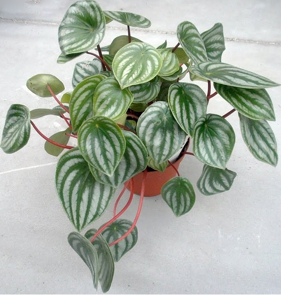 5. Otra planta para incluir: la Peperomia. Esta planta aguanta perfectamente en zonas con mucha luz y zonas con poca luz. No requiere de mucha agua, con regar cada 10 días es suficiente. La temperatura en la que más a gusto se encuentra ronda los 16/22ºC pero puede desarrollarse y adaptarse fuera de este baremo. Esta planta tiene unas hojas muy vistosas (hay gran variedad dentro de las peperomias)  y la podemos colgar cerca de una ventana o prácticamente cualquier otro lugar de nuestra casa.