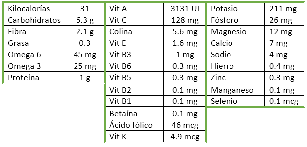 Con esta tabla nutricional te puedes hacer una idea de los nutrientes que tiene el pimiento rojo por cada 100 gramos: