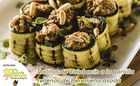 Rollitos de Calabacín a la parrilla rellenos de Berenjena asada