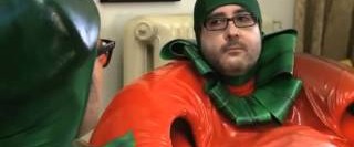 Dos tomates, uno transgénico y otro campesino, se citan en un bar después de haberse conocido a través de un chat en internet…
